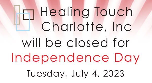 Healing Touch Charlotte is closed Tuesday, July 4, 2023 David Turner Jun 30, 2023 Community Events, Company News, Events, Massage Therapy, Recent News 0 comments Healing Touch Charlotte will be closed for Independence Day Tuesday, July 4, 2023 Have a safe holiday! Tagged as: CHarlotte events, holidays You may also like ... Computing Ergonomics and Massage Therapy Combat Chronic Pain Embracing the Mediterranean Diet: A Path to Health and Well-being Relieving Lower Back Pain with Massage Therapy